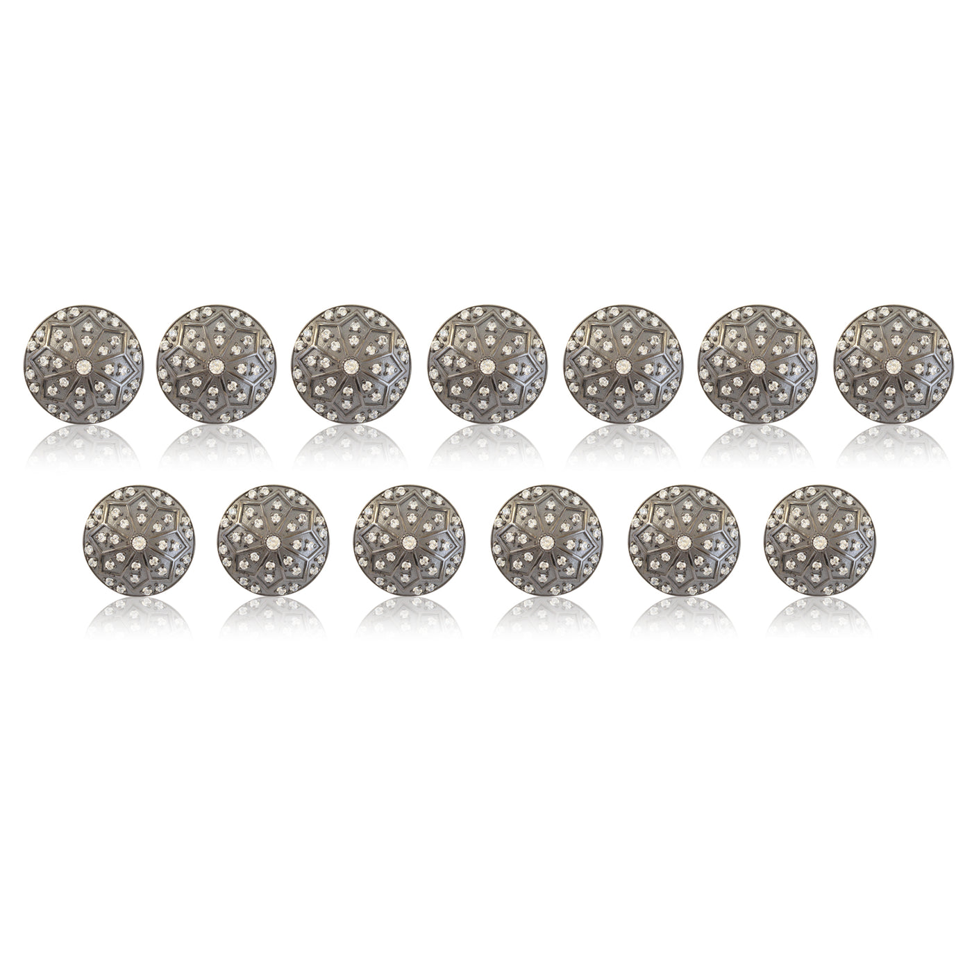 Our Peshwa Buttons are set in sterling silver featuring American diamonds with antique polishing, this luxurious pair adds an instant touch of royalty to any wedding outfit.
